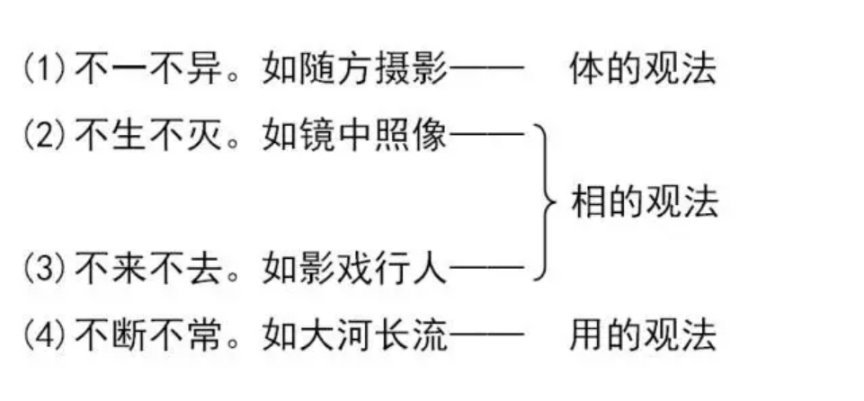 中观法门既包举体相用三大而观之,故不偏于有,亦不偏于空 (体相兼收);不偏于动,亦不偏于静 (体用兼收)。得旨深者,定能的的见性,与《起信论》貌异神同。