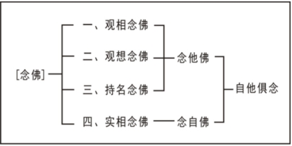 第二个是观想念佛,它是没有影像,完全靠文字──极乐世界有七宝池、八功德水、种种的莲华、宫殿,他从文字起观,随文入观的。